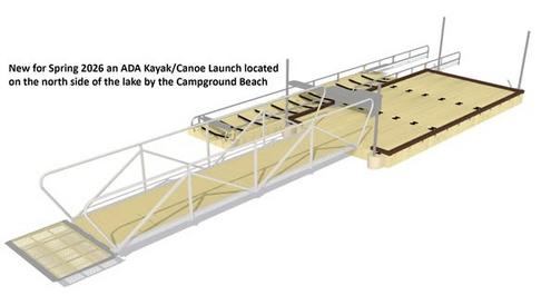 Our current and ongoing project in the works is making our parks more accessible for everyone. This ADA Kayak/Canoe Launch is being installed this spring thanks to generous grants from the Clinton County Foundation LEGACY Fund, the Clinton County Convention and Visitors Bureau, and your support through donations. This launch will be located on the north side of the lake by the Campground Beach.